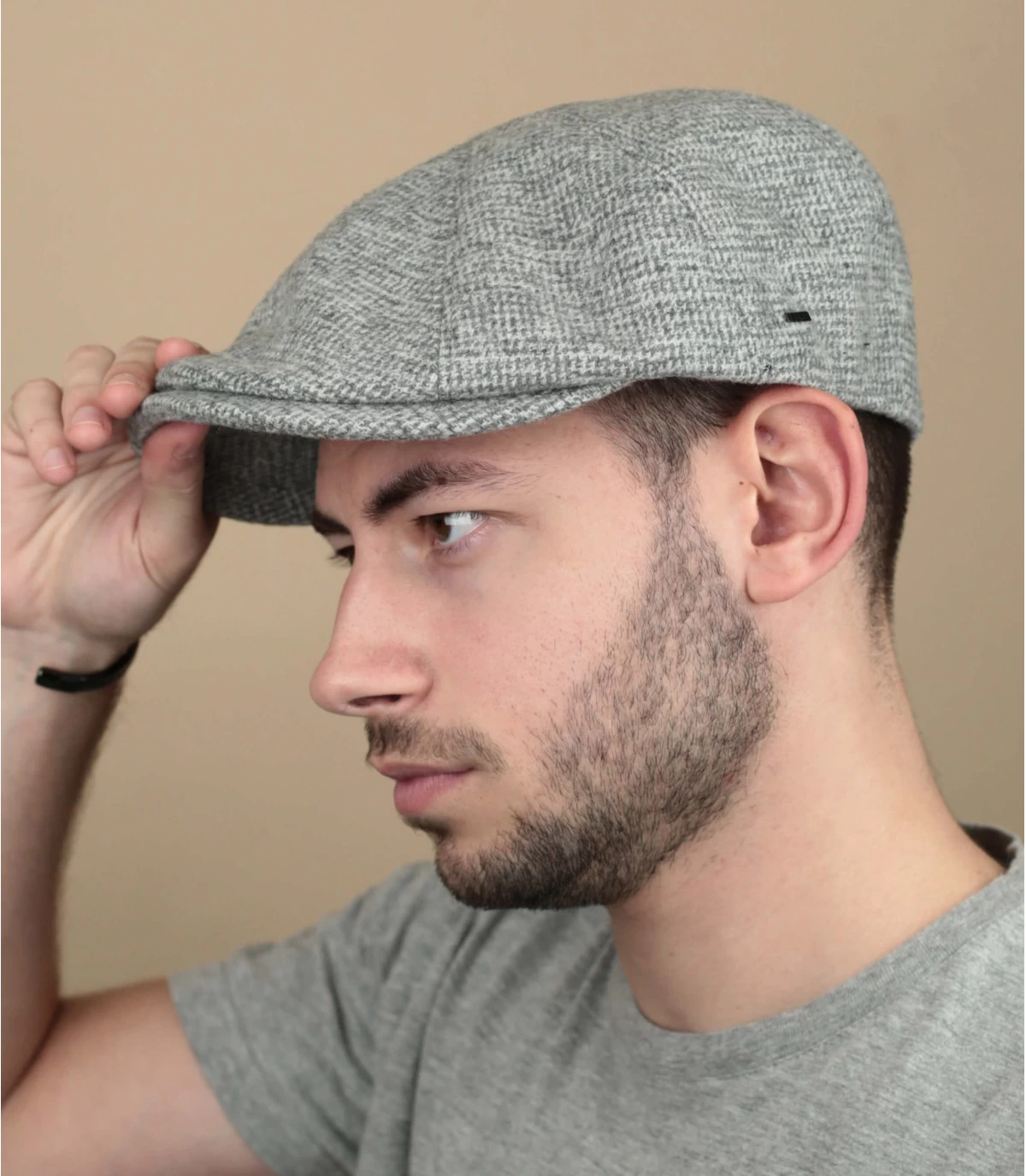 Tragen Sie diese grau gefärbte Schiebermütze aus gemischter Wolle. Es ist eine flache Cap, die bequem zu tragen ist und sich leicht mit Ihren Hemden und Jacken kombinieren lässt. Sie ist das Herzstück eines eleganten und modernen Outfits.