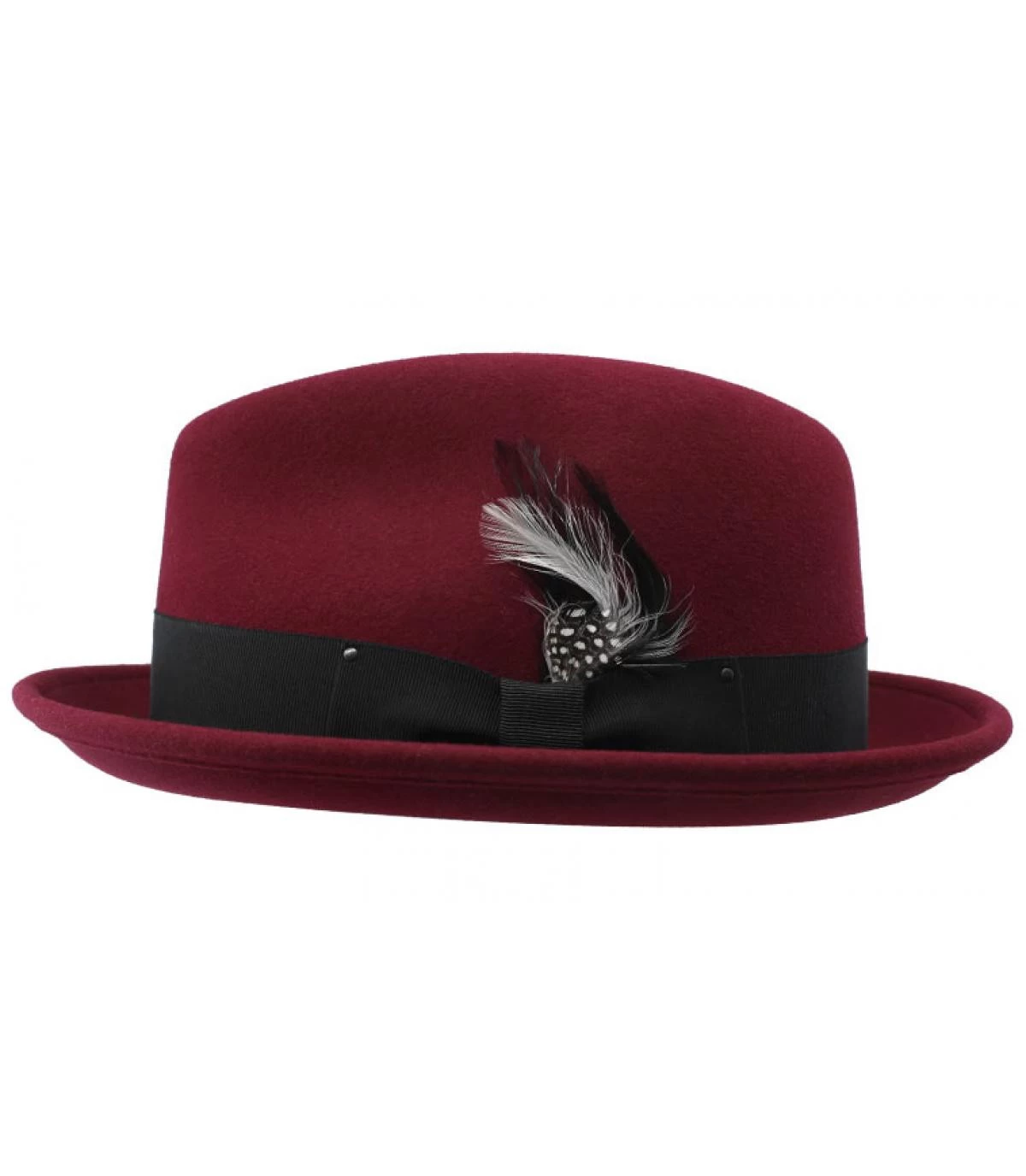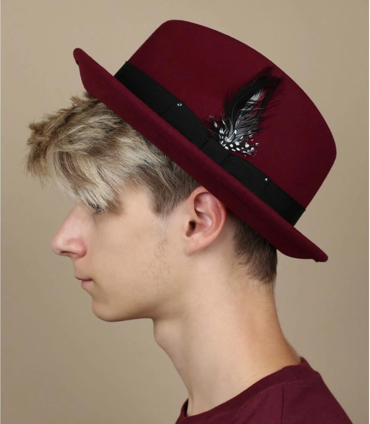 Zeigen Sie den Look eines Hollywood-Stars aus den 1920er Jahren, mit diesem erstaunlichen bordeauxroten Wollfilz Trilby, der uns von der amerikanischen Marke Bailey angeboten wird. . Hergestellt aus LiteFelt® einem wasserabweisenden Wollfilz, der seine legendäre Form dauerhaft behält. Der Trilby ist mit einem japanischen Ripsband und einer abnehmbaren Feder verziert.
