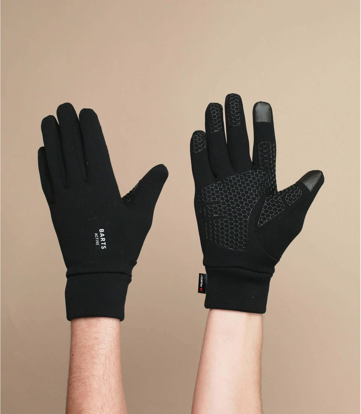 Schwarze feine Handschuhe mit spezieller Smartphone Beschichtung.