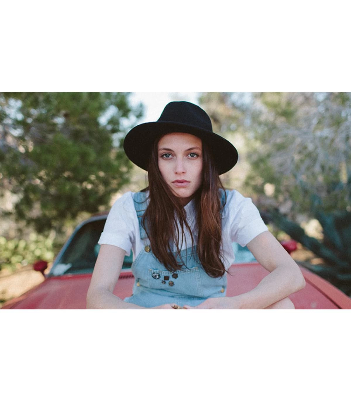 Schwarzer Damen Filzhut von Brixton mit breiter Krempe und Lederband.