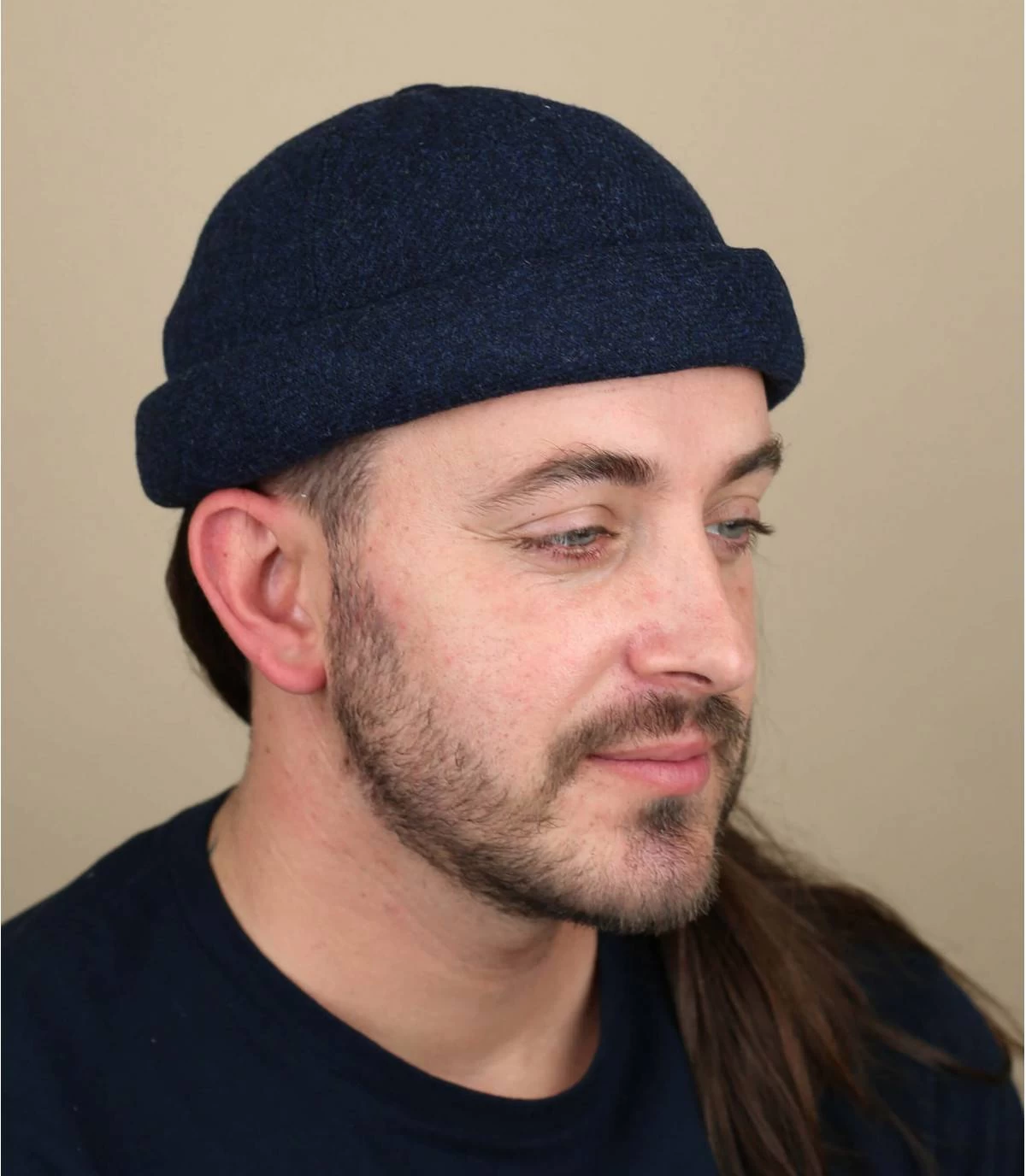 Composé de pure laine bleu marine chaude, ce bonnet docker inspiré des tenues nautiques apporte son style aventurier et le confort de sa doublure matelassée en ville.