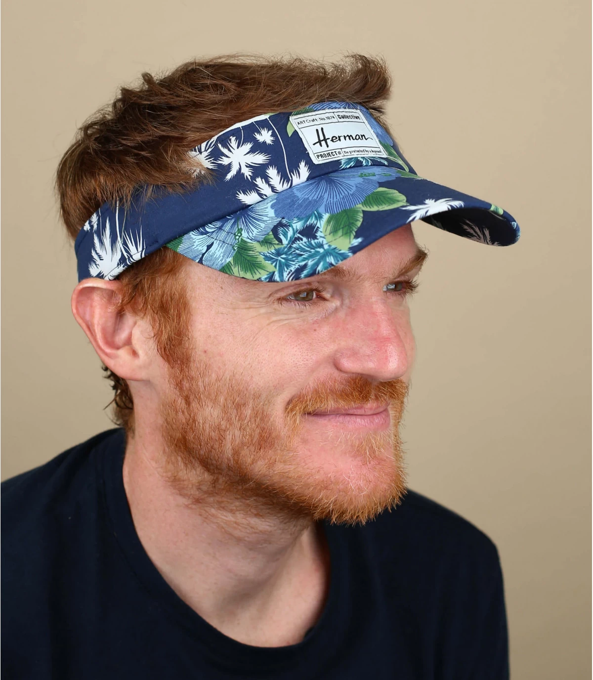 Entscheiden Sie sich in diesem Sommer für eine Visor Cap – ein wirksamer Schutz vor Sonnenstrahlen und ein echtes, trendiges Modeaccessoire! Das marineblaue Palmenmuster ist erfrischend wie das Meer auf der Insel Djerba in Tunesien. Es besteht zu 100 % aus Baumwolle.