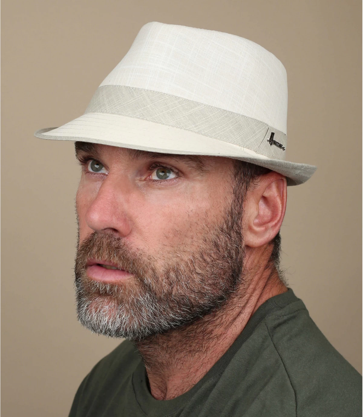 Wunderschöner Tribly aus grauer Baumwolle mit einem diskreten und eleganten zweifarbigen Farbeffekt. Das angenehme Modell aus einem natürlichen Material ist von einem breiten Ton in Ton abgestimmten Hutband hervorgehoben, ideal für die schöne Jahreszeit. Ein hübscher Hut von der Marke Herman.