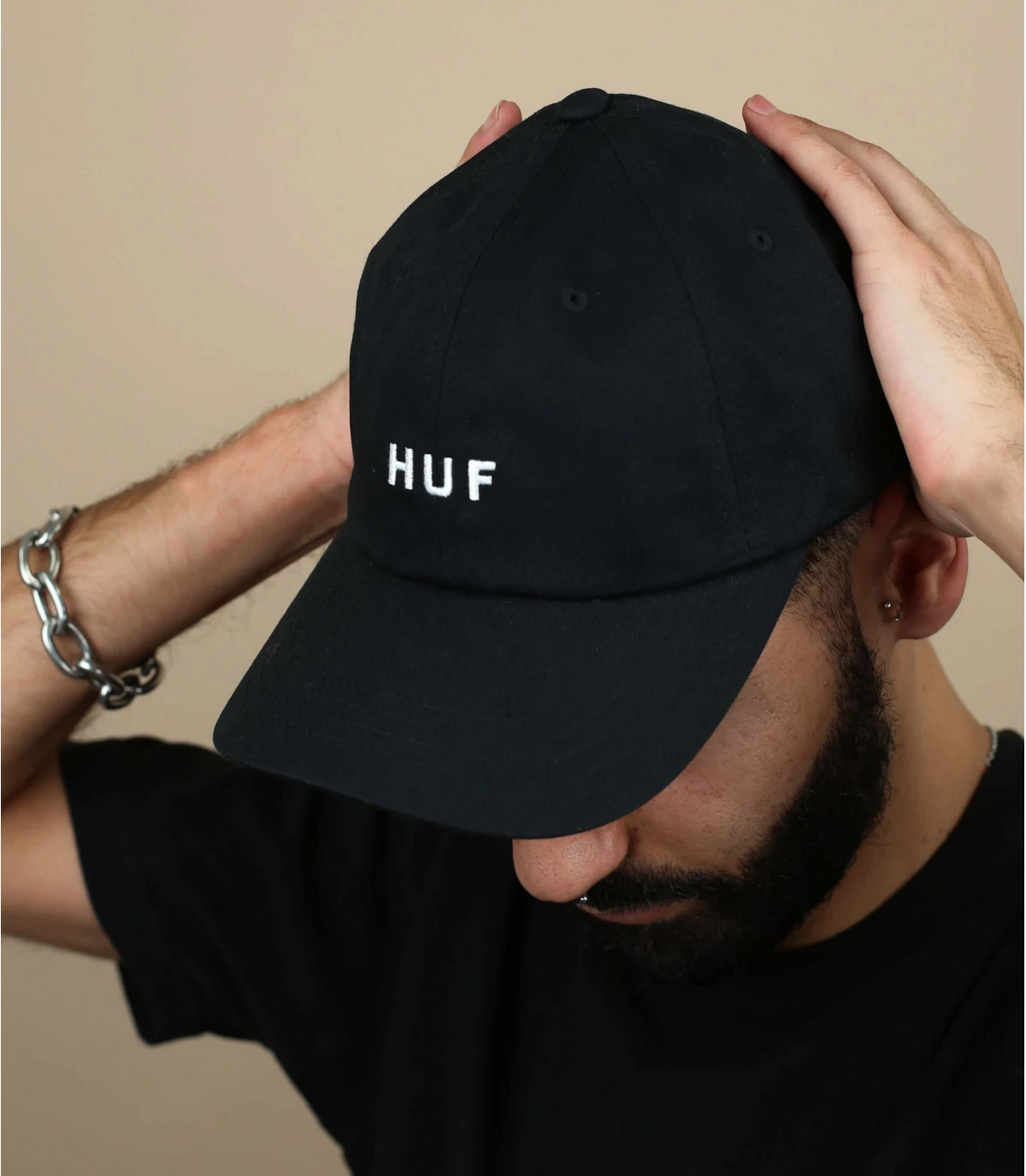 Schwarze Cap mit gebogenem Schirm, vorne bestickt mit einem kleinen Logo der kalifornischen Skate-Marke von Keith Hufnagel. Die leicht gebogene Form ist perfekt und modisch, die dezente Farbe passt zu allen Outfits, urban oder casual.