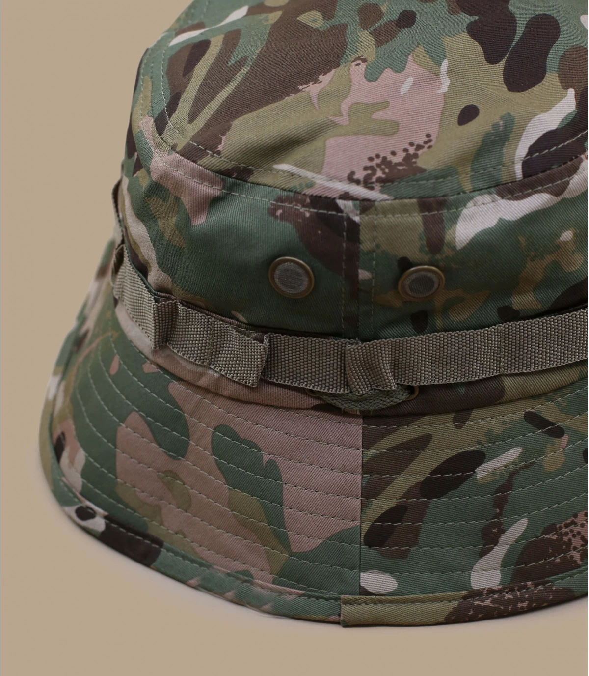 Tragen Sie diesen trendigen Boonie Hut mit Camouflage-Muster im Army-Stil zu Ihren Expeditionen in die Stadt oder auf dem Land. Er ist luftig und kann mit einem elastischen Riemen verstellt werden. Der rechteckige Aufnäher auf der Vorderseite zeigt Huf.