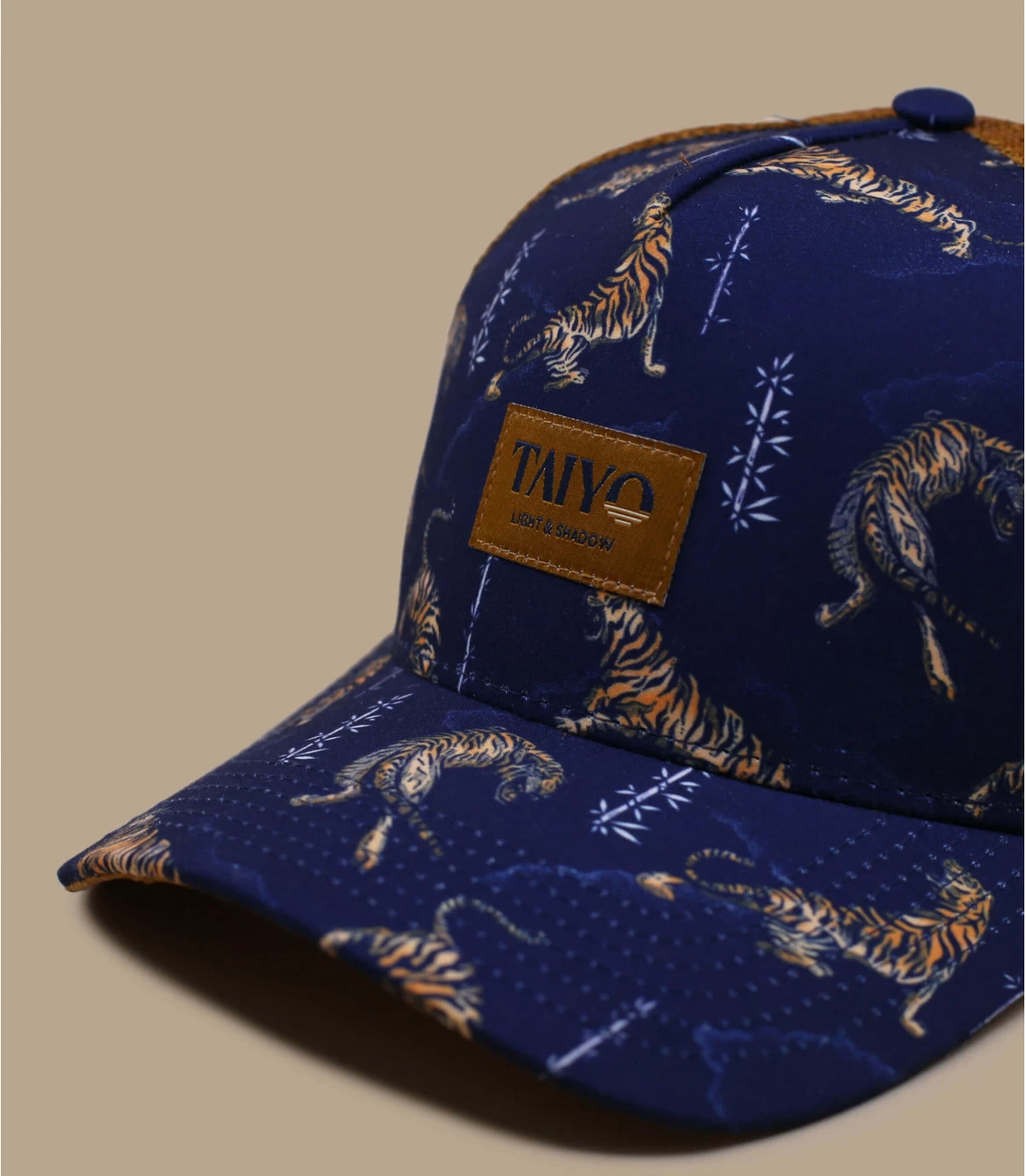 Taiyo hat sich auf Kopfbedeckungen spezialisiert und bietet uns einen sehr originellen Tiger-Print. Das Wildleder unter dem Schirm verleiht dieser wunderschönen Trucker Cap aus 100% recyceltem Material einen Hauch von Eleganz.
