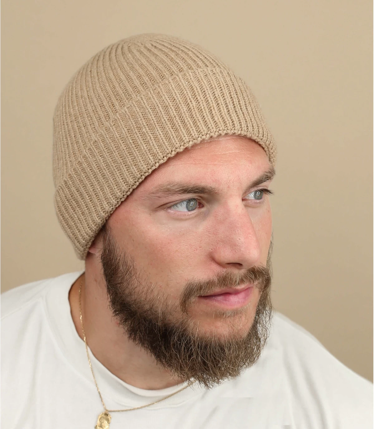 Mütze aus recycelter Wolle, hergestellt in Frankreich, Farbe camel. Einheitsgröße: 55-60 cm Kopfumfang