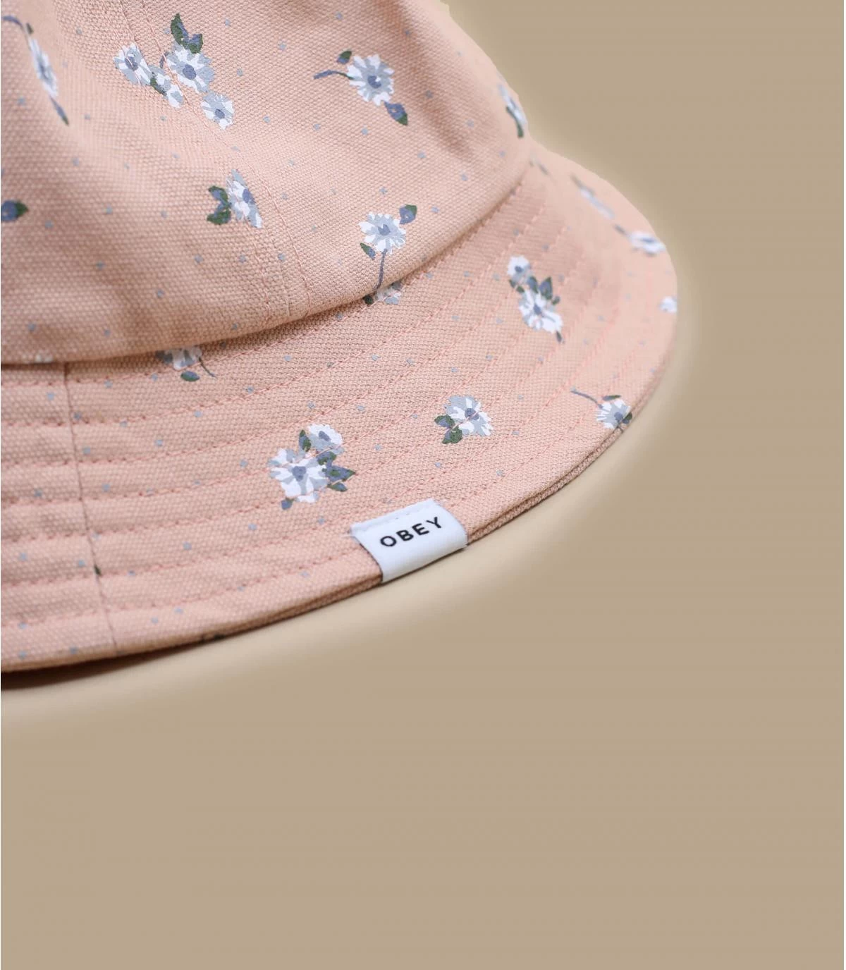 Genießen Sie die schönen Tage im Freien, ohne einen Sonnenbrand zu bekommen, mit diesem charmanten pfirsichfarbenen, breitkrempigen Fischerhut, der mit schönen weißen Blumen bedruckt ist. Er wird uns von der amerikanischen Marke Obey angeboten.