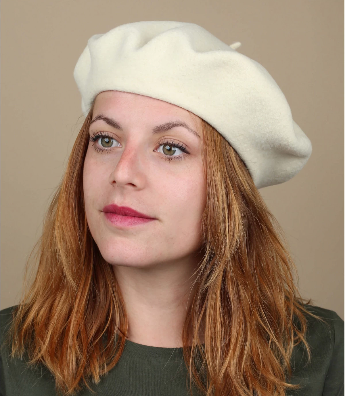 Zart wie die Feder eines Engels in einer makellosen hellbeigen Farbe und der typischen traditionellen Form einer Baskenmütze. Das Barett aus Merinowolle hergestellt in den Pyrenäen von der Marke Laulhère, ein elegantes Accessoire für die besonderen Momente im Leben.