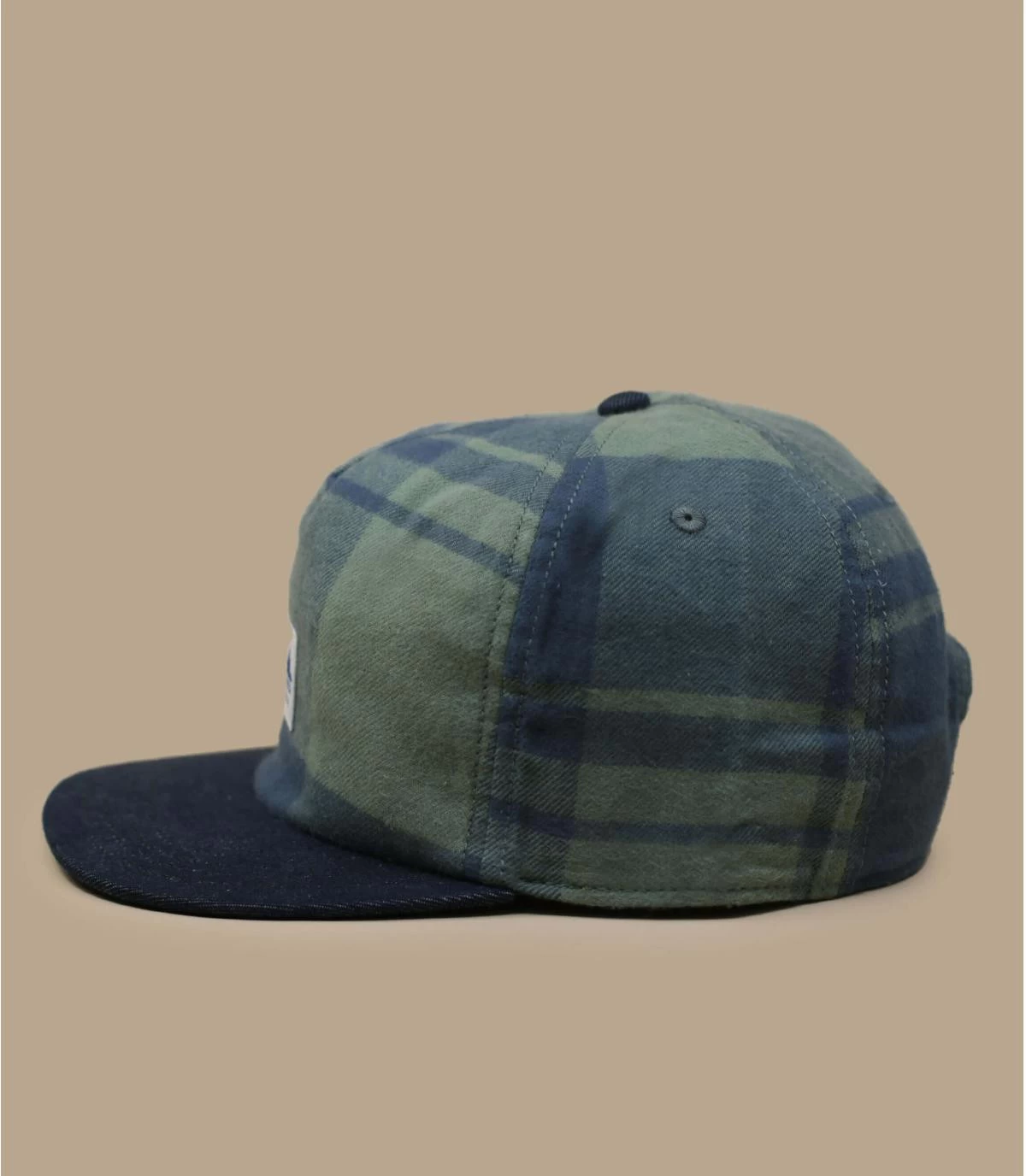 Mit dieser Snapback Cap im klassischen, lässigen Stil werden Sie einen tadellosen Look haben. Die Cap hat ein grünes Karomuster und der Schirm ist aus Denim. Sie ist mit einem saugfähigen Band versehen.
