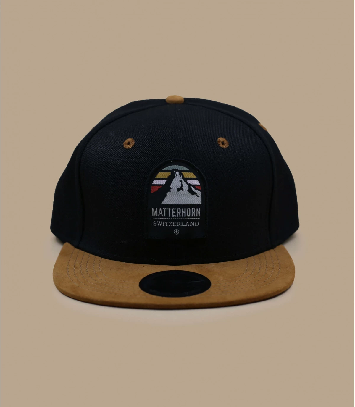 Auf dieser wunderschönen schwarzen Snapback mit einem Wildleder Schirm hebt sich ein hübscher Patch in gekonnter Manier hervor, exklusiv von der Grafikerin Charlotte Pilat gezeichnet, für die Sonderedition von Headict. Das Matterhorn ist hier in monochrome Farbe auf einem bunten Hintergrund dargestellt.