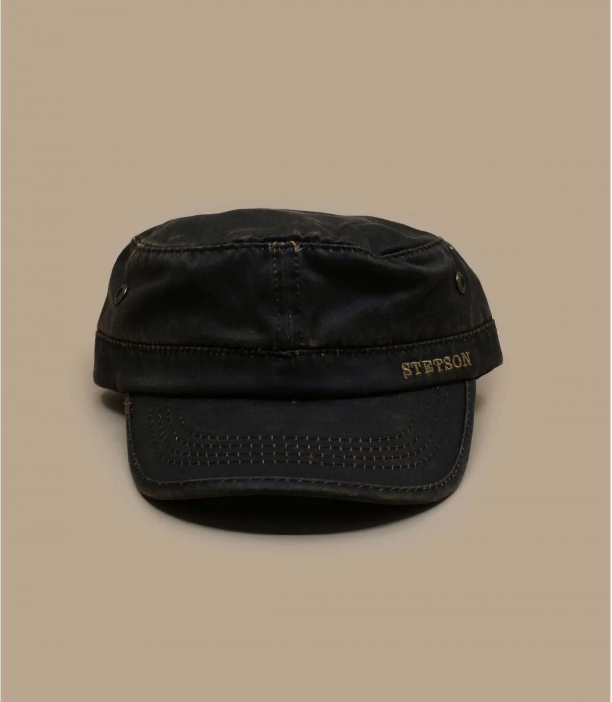 Braune Army Cap von der USA Marke Stetson. Metall-Luftlöcher und Logo auf der Vorderseite.