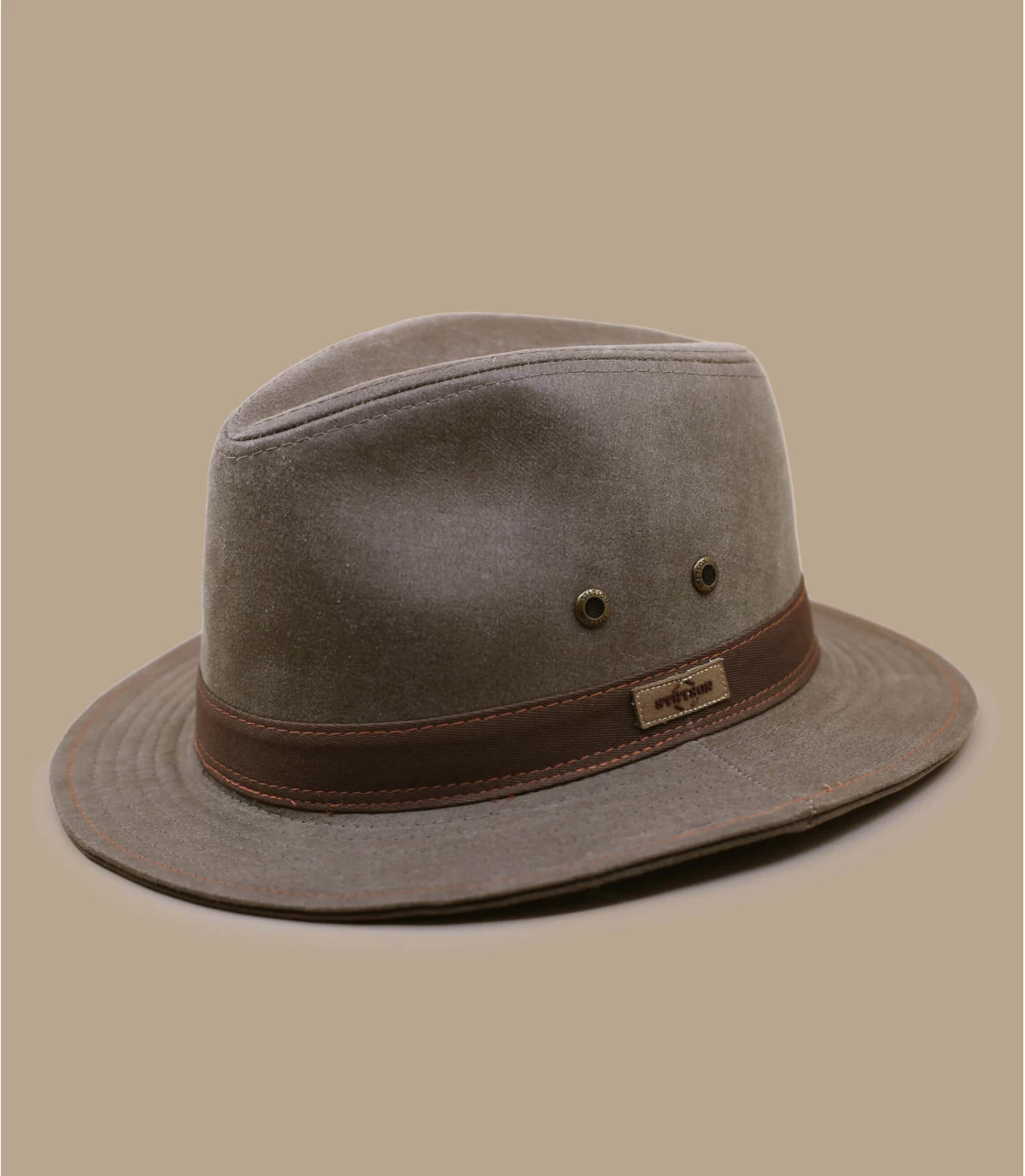 Mit diesem Fedora Hut in der Farbe Taupe sehen Sie wie ein Abenteurer aus und haben maximalen Spaß daran, ihn zu tragen. Er ist kompakt, strapazierfähig und bequem, seine Ösen sorgen für eine gute Belüftung. Ein Lederriemen umschließt den Hut und verleiht Ihnen einen vornehmen Look.