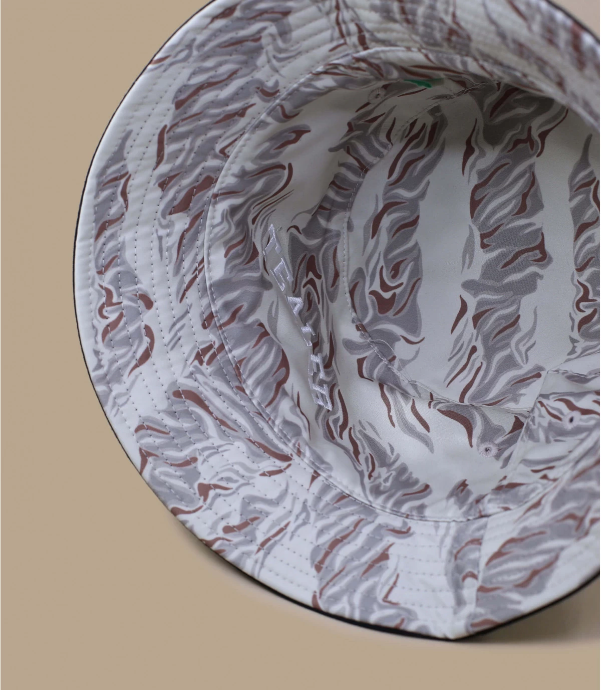 Dieser wendbare Fischerhut aus Baumwolle ist mit einem sandfarbenen Camouflage-Muster verziert. Er ist ideal für den Sommer und hält Ihren Kopf vor der Sonne geschützt. Wechseln Sie ihn je nach Stimmung: schrill für eine Party oder schwarz für mehr Klasse.